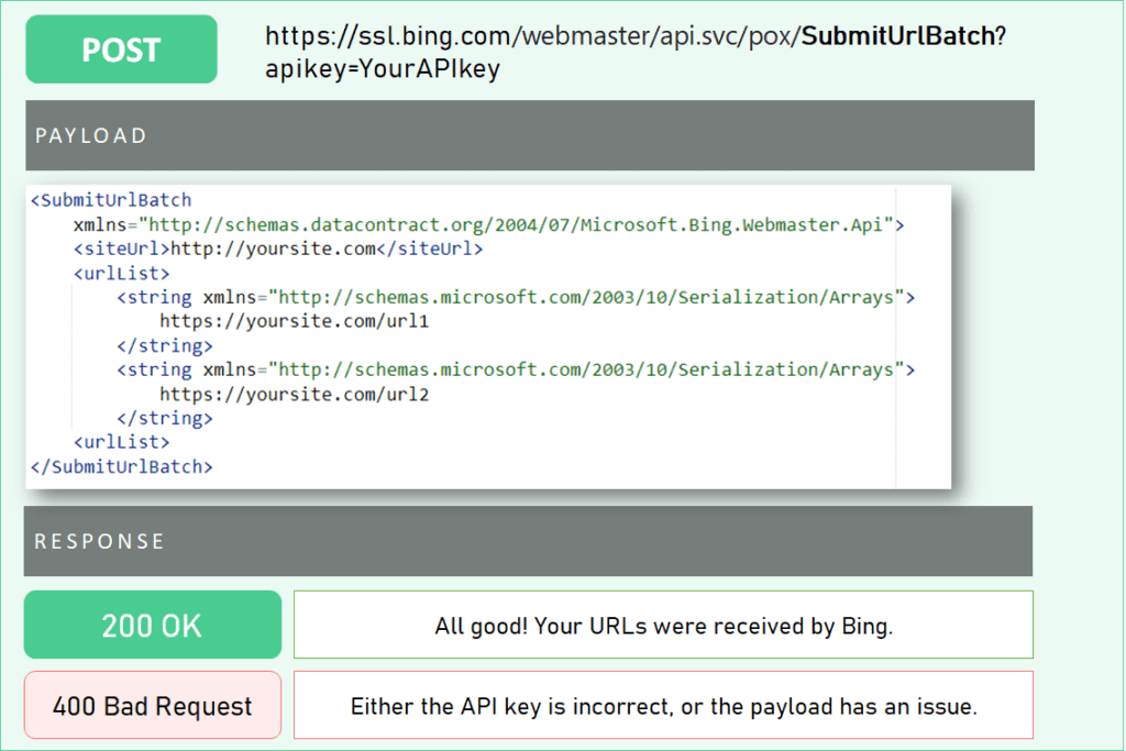 必应 URL 提交 API 提供了自动通知必应网站上任何内容更改(包括页面添加、删除和更新)的功能。这有助于立即将内容提交到必应的索引中,并为数百万用户提供服务。