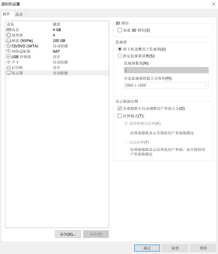 解决方案为:打开虚拟机设置,找到显示器>加速3D图形,将前面对话框取消勾选