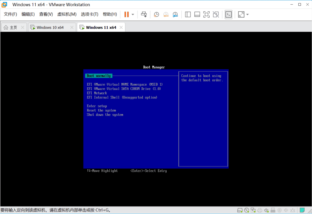点击完成后,虚拟机就已经创建完毕了,接下来进行Windows11的系统安装。
