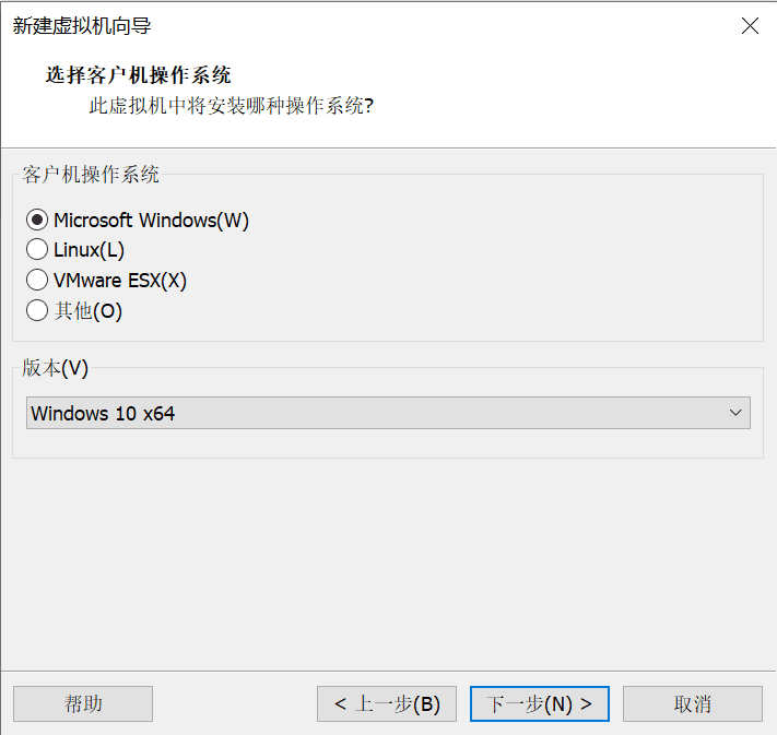 选择客户操作系统这一步,选择Windows 10 x64 这个版本是最接近Windows11的,可以兼容使用。