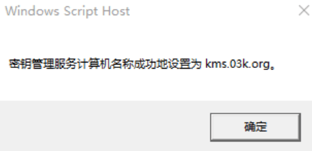 之后会弹出密钥管理服务计算机名称成功地设置为kms.03k.org