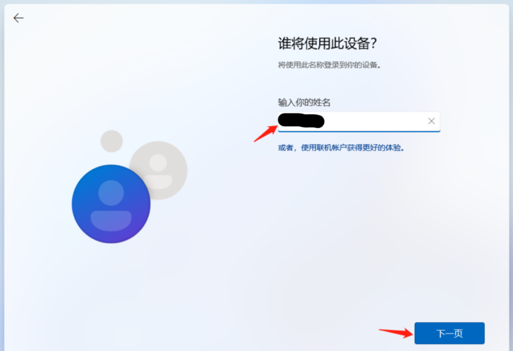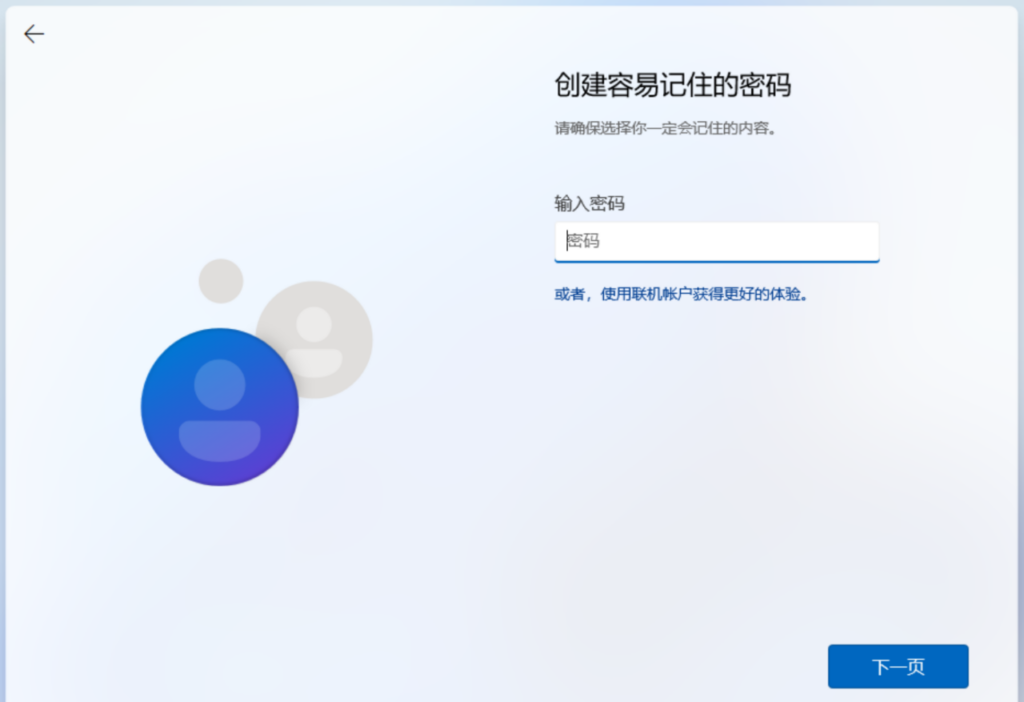 如果连接WiFi的话,这一步是输入微软帐号,没有微软帐号的,需要在微软注册一个邮箱地址来作为帐号使用。