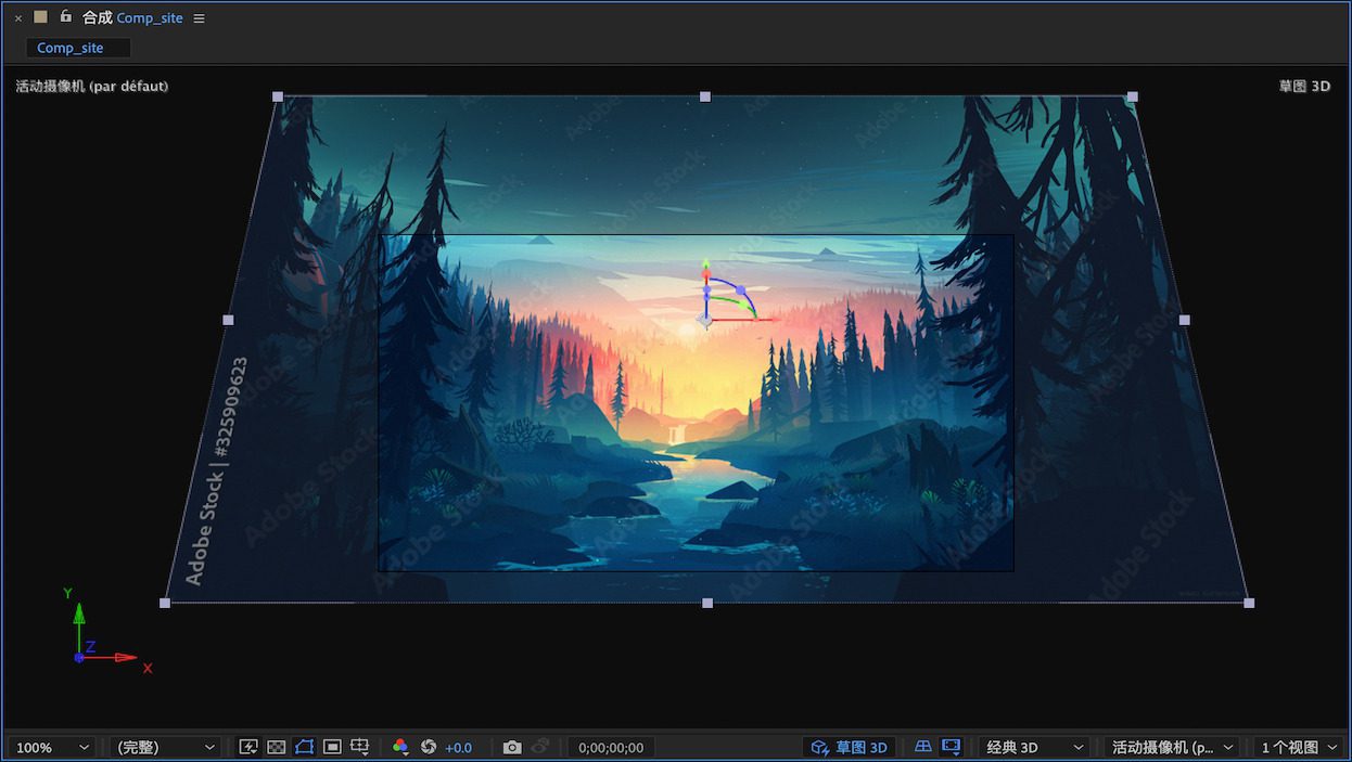 扩展查看器将实时 3D 草稿预览扩展到了合成帧的边界之外。查看画外 3D 内容包含的素材,然后轻松地将其置于场景中。隐藏或暗显帧以外的区域,查看您的最终拍摄情况。