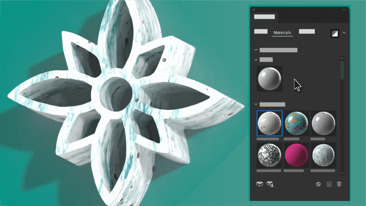 您可以使用 Substance 材质为图稿添加纹理,并创建逼真的 3D 图形。您可以添加自己的材质,或从免费的社区和 Adobe 材质中进行选择。您还可以利用订阅计划,添加数千个 Adobe Substance 3D 材质。