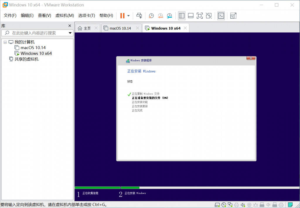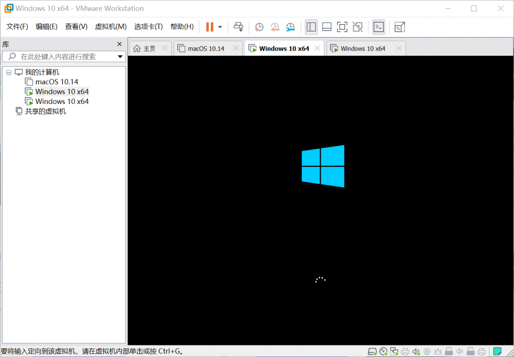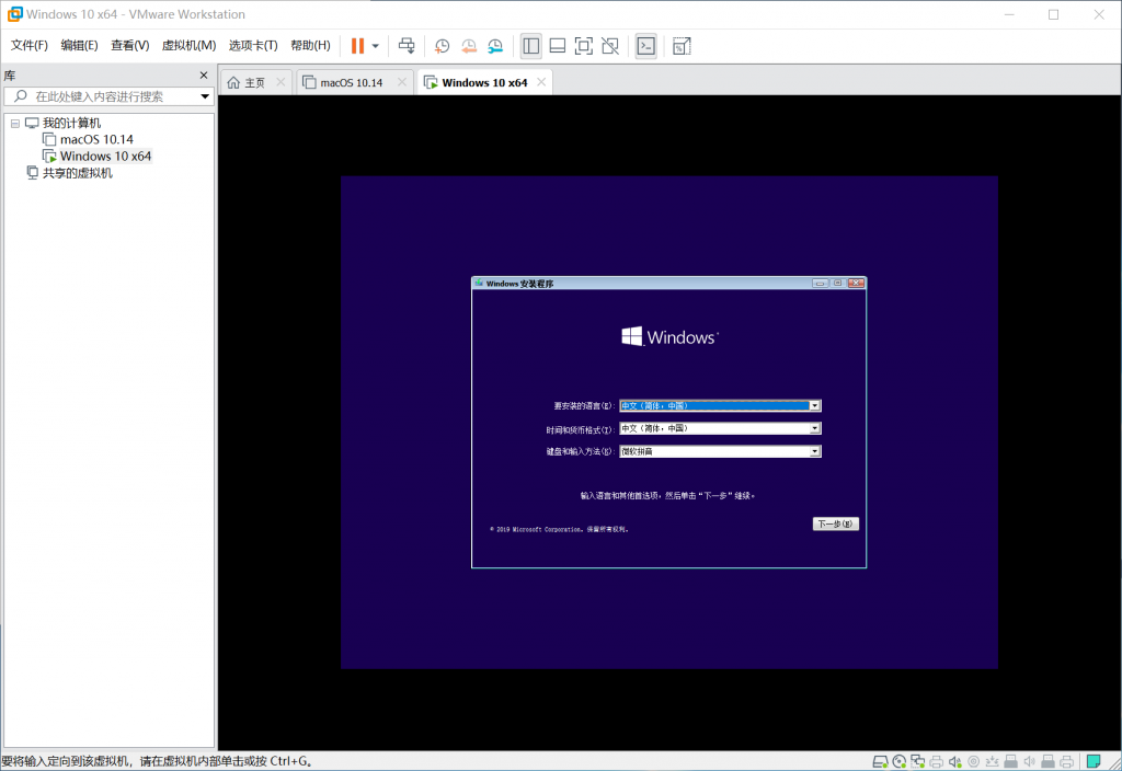 要将输入定向到该虚拟机,请在虚拟机内部单击或者按Ctrl+G,鼠标点击安装界面就可以控制虚拟机了。