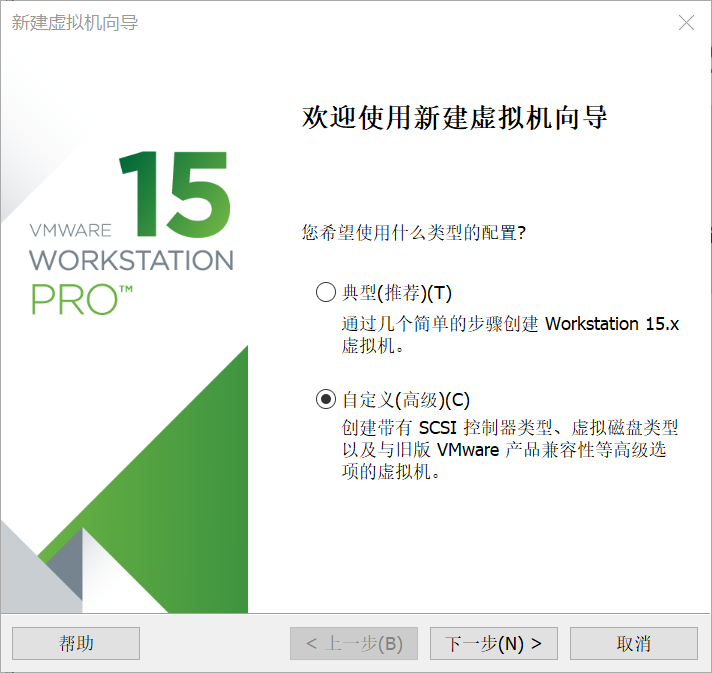 不要使用典型安装,选择典型安装后虚拟机有可能会黑屏,选择自定义(高级)安装进入选择虚拟机硬件安装兼容性界面。默认下一步。