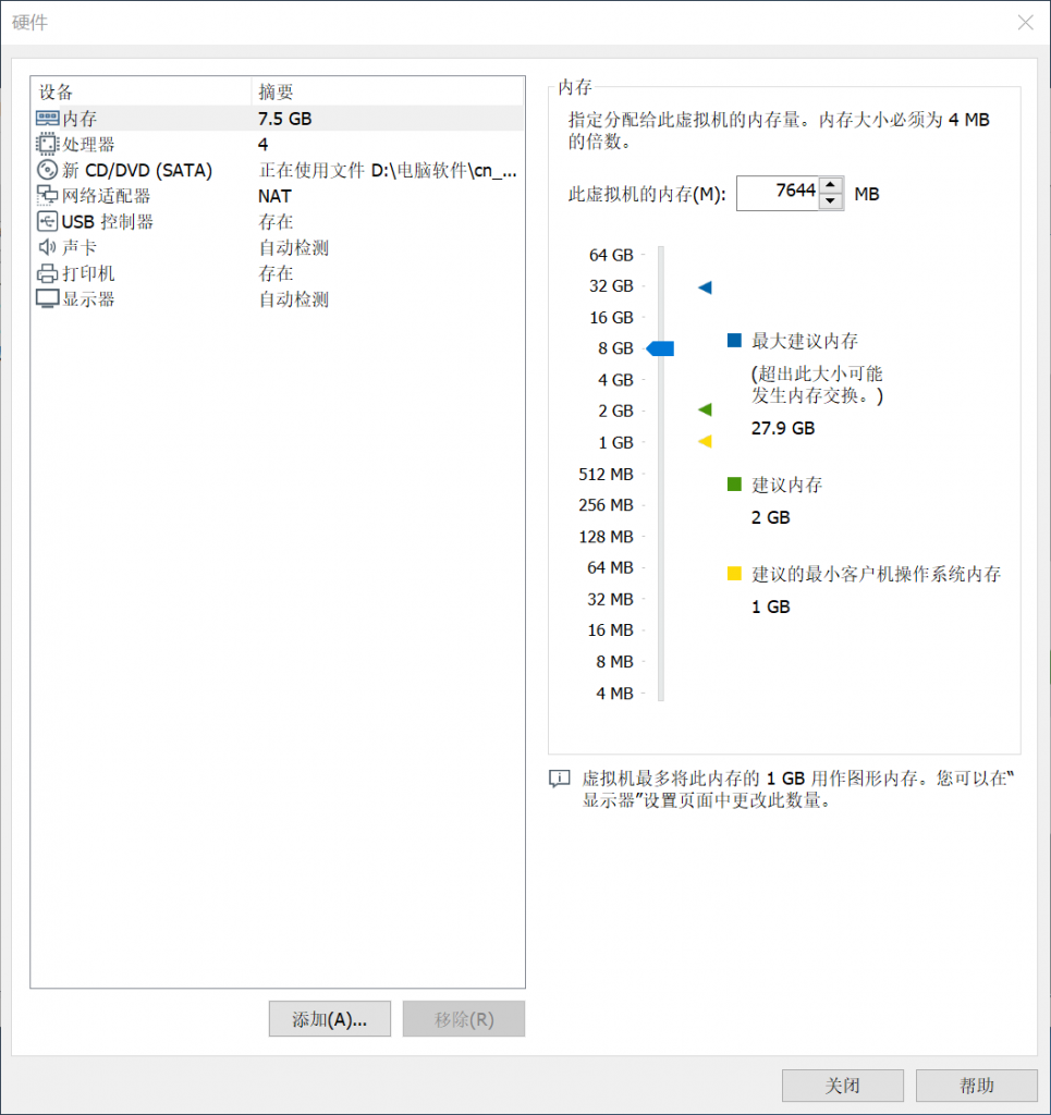 虚拟机内存设置,这个根据本机内存来设置,一般不要超过本机内存的50%,例如64G的内存,分给虚拟机8G就可以了。系统上可能还有其它虚拟机的存在,这个在后期也是可以随意更改的,这里先默认选择8G。下一步: