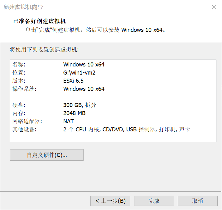 已经准备好创建虚拟机,在这里可以自定义硬件,可以改一下内存的大小,调整完内存大小,可启用CPU的虚拟化功能后,点击完成就可以创建虚拟机了