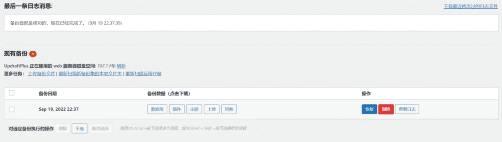 在wordpress中如何批量删除所有文章?有几种方法可以删除掉所有文章,一种是重新安装wordpress,删除的彻底,所有插件都需要重新下载,重新设置,比较麻烦。还有一种就是在wordpress安装设置完毕后,安装一个UpdraftPlus的备份插件,将配置好的wordpress备份,需要恢复的时候,一键还原就可以了。