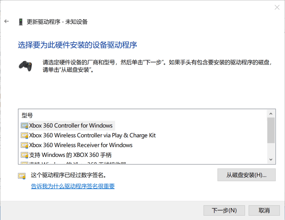 到这里xbox360手柄的win10驱动程序已经安装成功了。