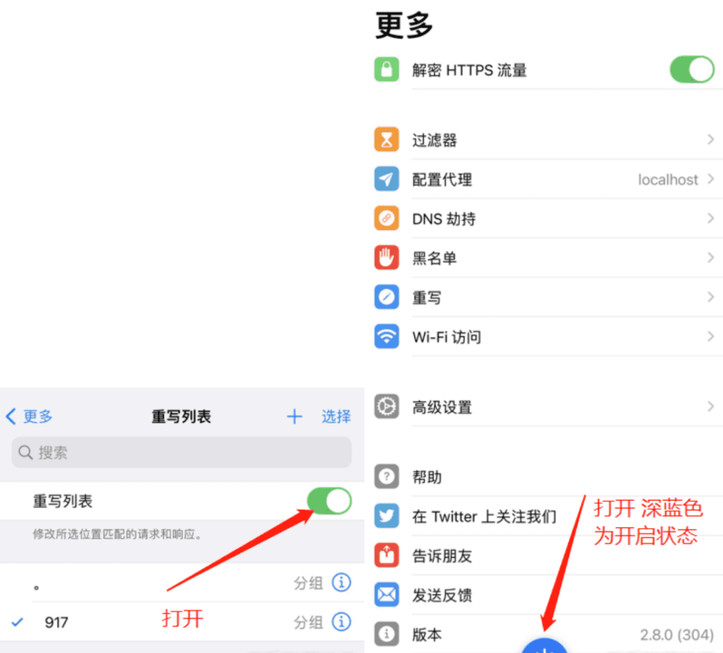 选择新添加的重写,打开“重写列表”,点击开启。