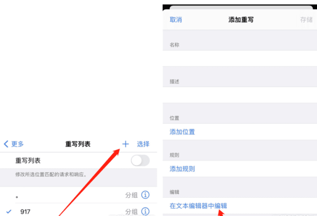 2、添加重写→在文本编辑中编辑,粘贴代码→完成→储存