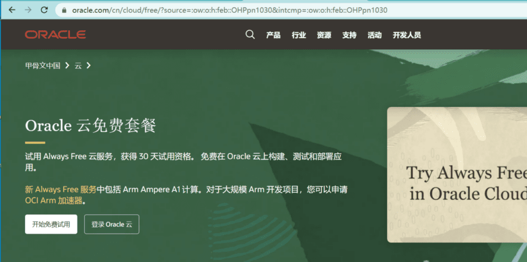 试用 Always Free 云服务,获得 30 天试用资格。 免费在 Oracle 云上构建、测试和部署应用。