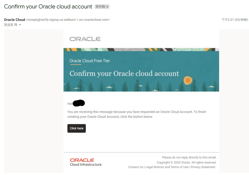 点击click here后,跳转到甲骨文云的账户信息填写页面。继续填写注册信息。