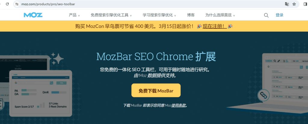 域名PR查询 Google 谷歌域名权重查询 MozBar SEO Chrome 扩展 MozBar 是一个浏览器扩展工具栏,可提供谷歌域名权重查询和有关您正在浏览的网站的各种 SEO 信息。它包括有…
