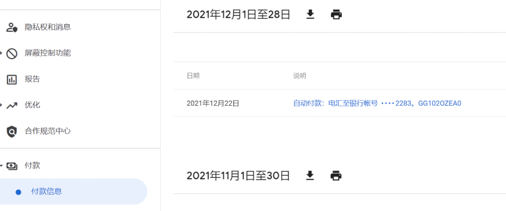 每月 21 日:在每月的 21 日,交易中会显示“正在付款”专列项,表示系统正在处理您的收入并发往您的收款银行。当这条专列项更新为“付款已发出”时,即表示我方银行已同意支付这笔款项,并已签发进行处理。