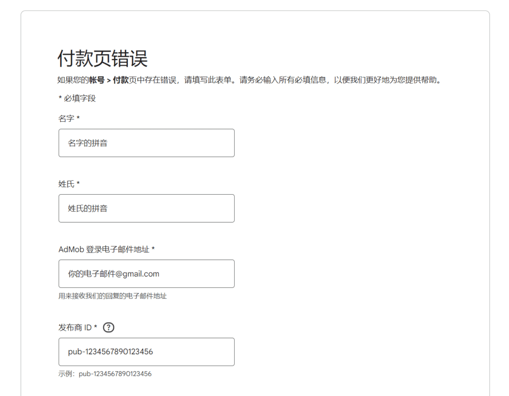 AdMob帮助的付款页错误页面:https://support.google.com/admob/contact/payment_page_error