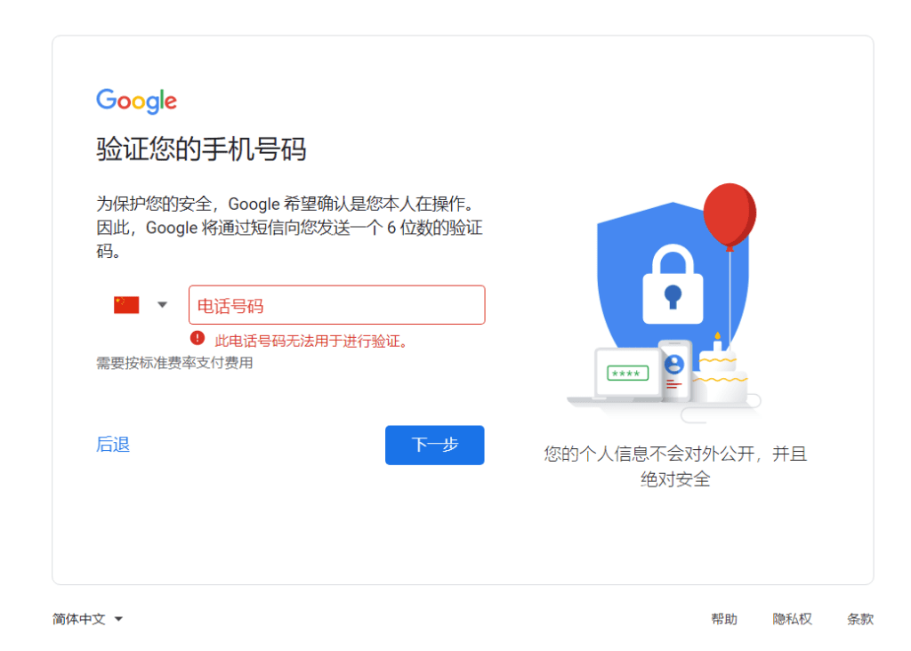 在国内注册谷歌账号时,经常会遇到 此电话号码无法用于进行验证 的情况,很多同学在注册谷歌账号时经常会遇到这个问题,谷歌无法给手机号发验证短信,注册一直卡在电话号码验证上,是国内手机号不能通过谷歌的验证吗?无法注册谷歌账号基本都不是电话号码本身引起的,换新号码往往也没用,下面介绍几个靠谱的Gmail邮箱注册教程