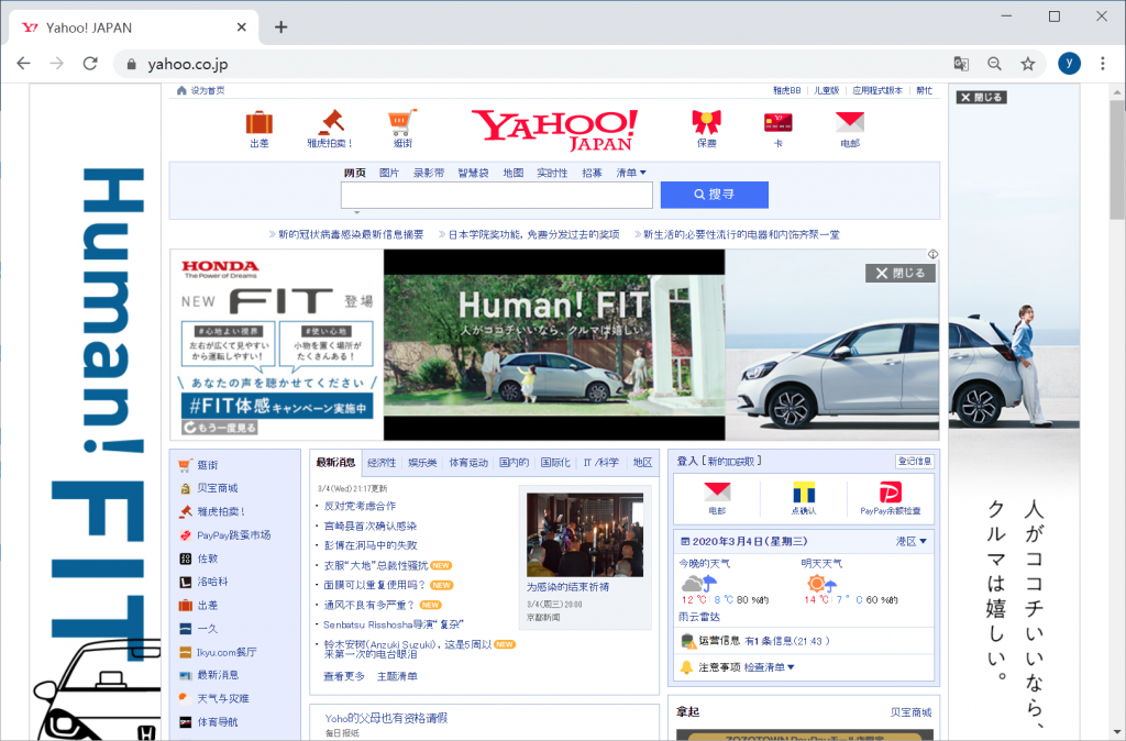 Yahoo日本是日本的门户网站,网站栏目包括拍卖、购物、财经、电子邮箱、即时通信、知惠袋(知识+)、字典、翻译、地球村、博客、GYAO!动画、游戏、漫画、地图、新闻、百科全书、Yahoo!BB