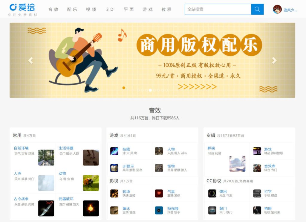 号称中国最大的数字娱乐免费素材下载网站,免费提供免费的音效配乐,3D模型,视频,游戏素材资源下载。国内的一个免费素材分享平台,网站有铜币积分系统。