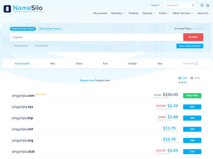 声明:Namesilo注册链接包含推荐人ID,不影响正常域名注册,如果域名注册成功Namesilo网站会给予推荐人额外的奖励。
