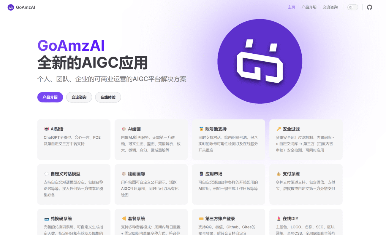 GoAmzAI 个人、团队、企业的可商业运营的AIGC平台解决方案