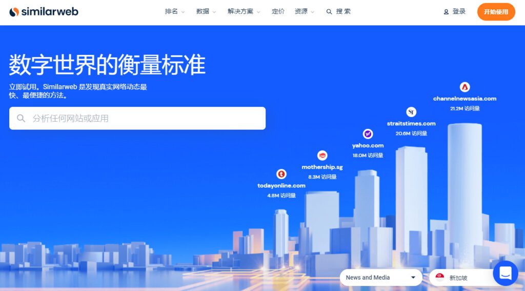 一体式网站分析及竞手流量情报平 比较网站的流量与性能,分析策略,扩大您的市场份额。