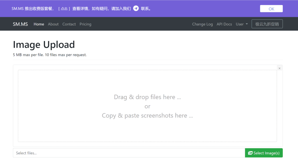 sm.ms免费图片分享,每个文件最大5 MB,每个请求最多10个文件。在此处拖放文件或在此处复制并粘贴屏幕截图。