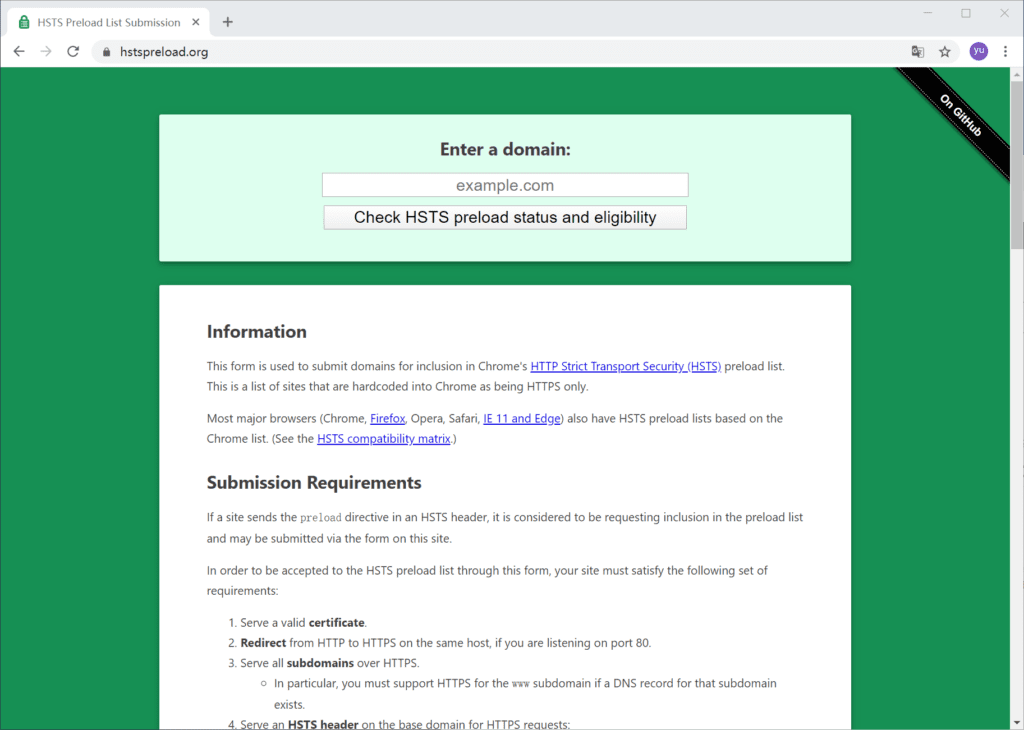 HSTS标头预加载检测工具。如果站点preload在HSTS标头中发送指令,则认为该请求正在请求将其包含在预加载列表中,并且可以通过此站点上的表单提交。