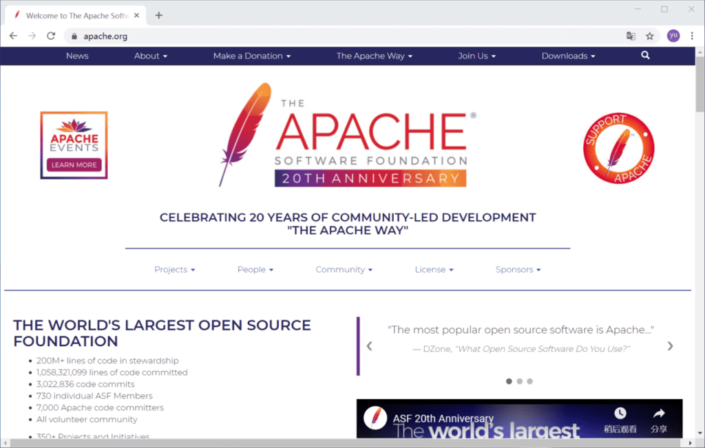 Apache HTTP Server是Apache软体基金会的一个开放原始码的网页伺服器软体,可以在大多数电脑作业系统中运行。由于其跨平台和安全性,被广泛使用,是最流行的Web伺服器软体之一。